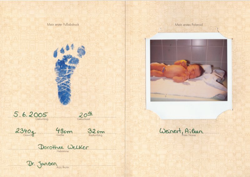 Dies ist mein Babypass aus der Klinik mit meinem aller ersten Polaroid.